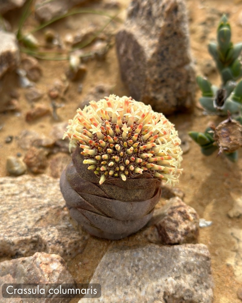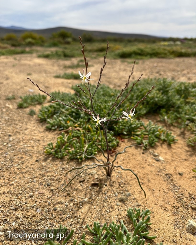 Succulent Karoo vegetation is characterised by succulents and geophytes (underground bulbs). Succulent leaves allow plants to effectively store water. Similarly, geophytes are effectively underground succulents storing their extra energy in carbohydrate-rich tubers, corms and rhizomes. To survive the stresses of summer drought or winter cold they die back to these underground bulbs. These were an important food source for hunter-gatherers in the past – and indeed are still eaten in the present.