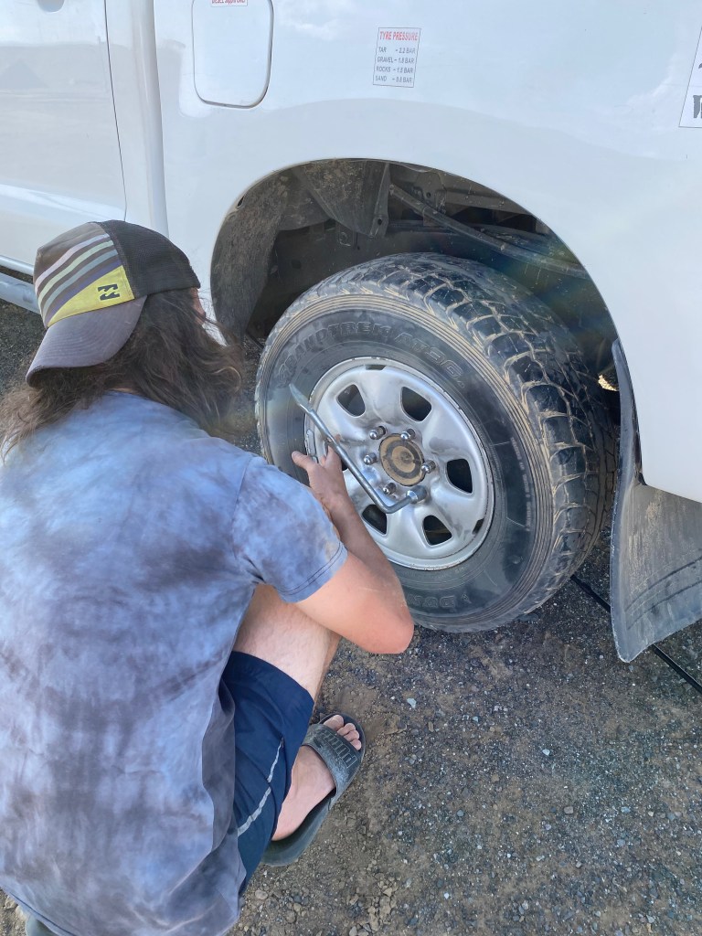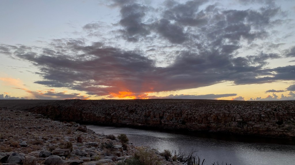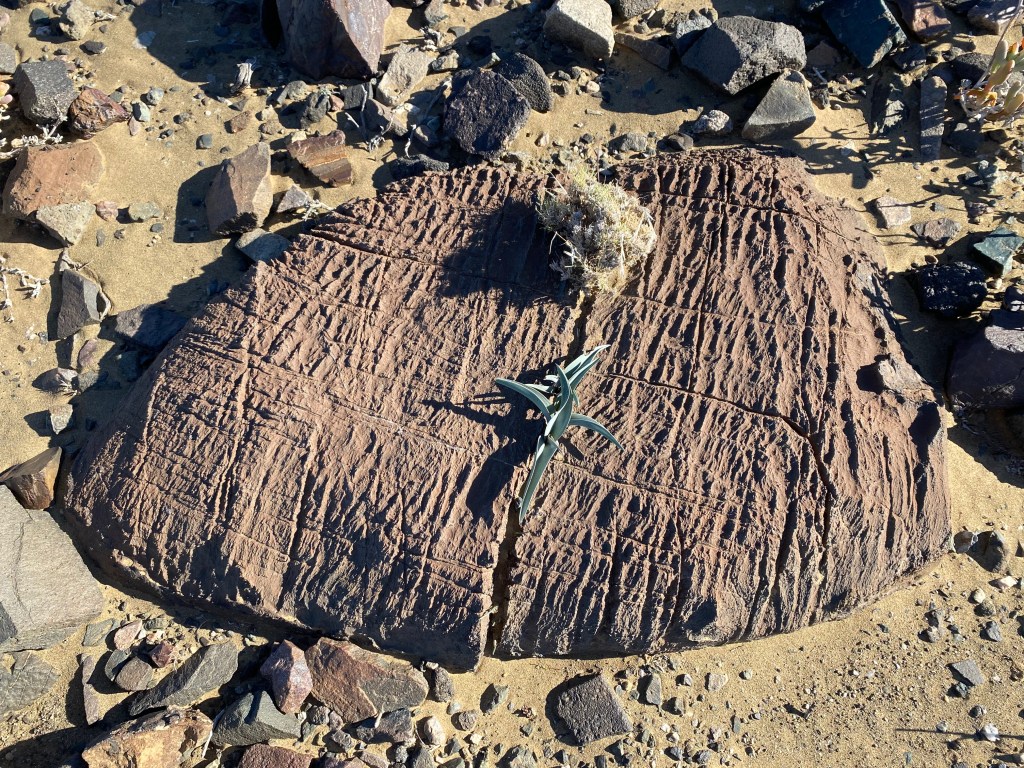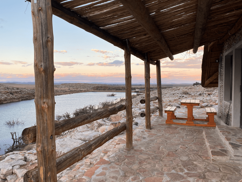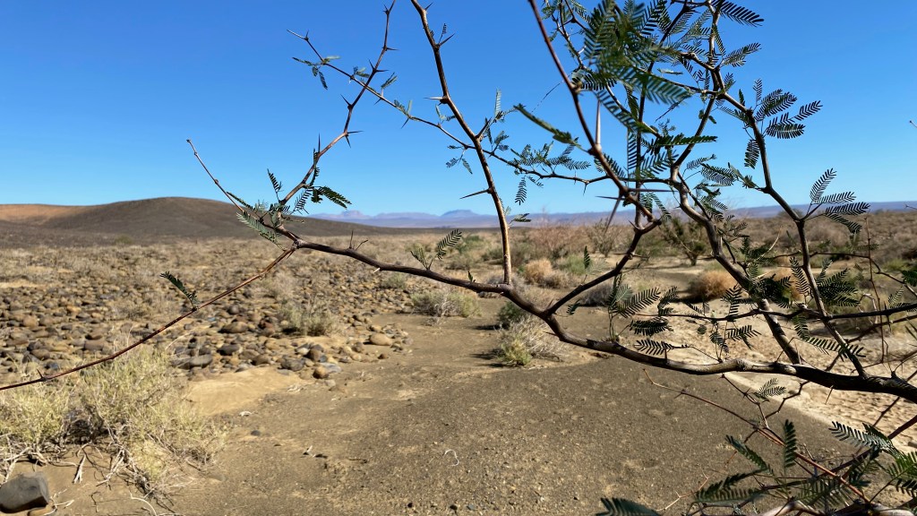 Unlike our previous fieldwork for my PhD which had only had a shoe-string budget, my MCSA fellowship allowed us to rent a fully-equipped 4×4 ‘bakkie’ (with two spare tyres) from Berg 4×4 to tackle the stony desert roads, and I was also entrusted with ICArEHB’s state-of-the-art Einscan Pro portable 3D scanner (nicknamed Hannah the Scanner). Our usual accommodation in the area, the beautiful Karmedo River Cottage, had had an upgrade since our last visit, now with the luxuries of solar power and Wi-Fi that turned it into the world’s most picturesque research lab.